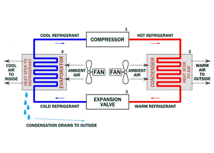 Without proper airflow through both the condenser and the evaporator, the phase changes cannot occur. Debris blocking the fins on either component will reduce or eliminate cooling capability and it may result in compressor damage.